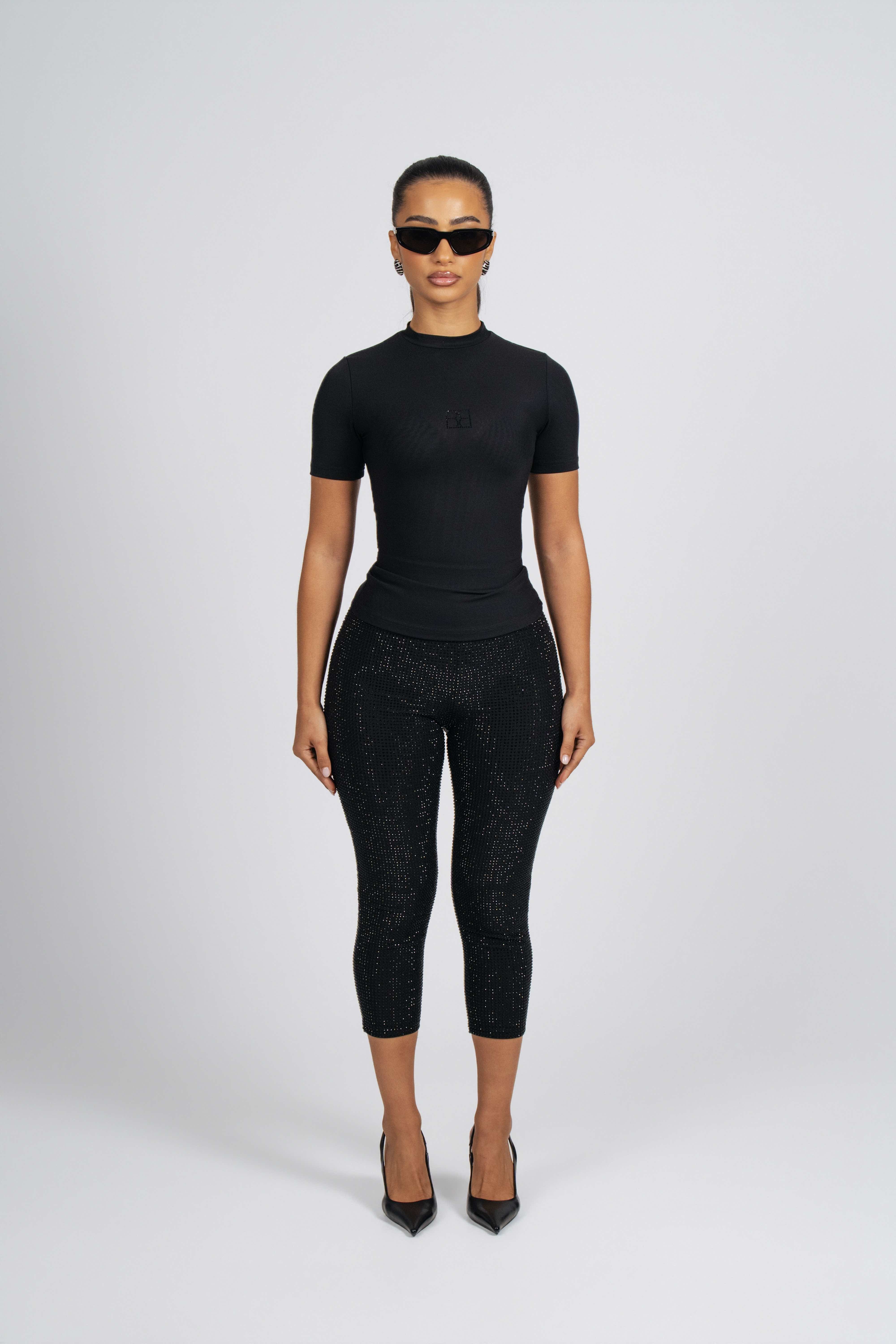 Black Rhinestone Capri Leggings